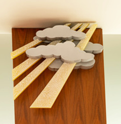 Summer Sun Fibreglass clouds and bronze sun rays on 80cm pane.